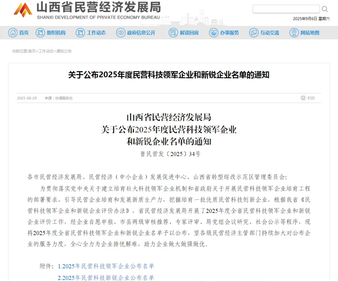 恩光科技上榜“山西省2025年民營科技新銳企業(yè)”名單